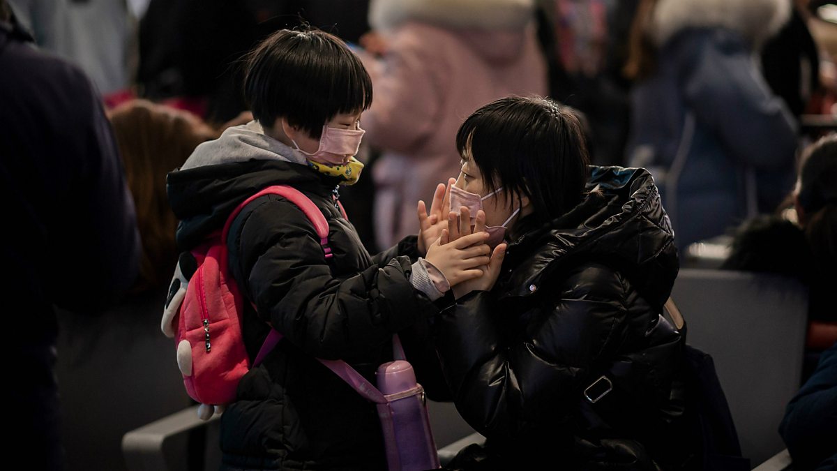 (Picture: A mother and her daughter wear protective masks while waiting to board a train as they travel for the Lunar New Year holidays, at the Beijing West Railway Station on 24 January 2020. Credit: Nicolas Afouri/AFP)