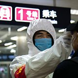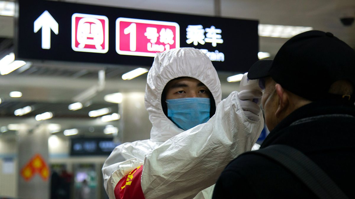 Photo: A health worker checks the temperature of a man entering the subway in Beijing. Credit: Getty Images.