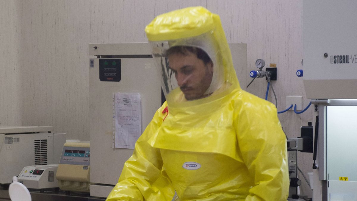 (Picture: A laboratory worker of the Sacco Hospital in Milan, which specialises in infectious diseases, in Milan. Credit: EPA/Andrea Fasani)