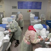 (Photo: Workers in a factory of medical masks and jumpsuits in Nantong, Jiangsu province. China is facing a shortage of medical masks and other protective gear as people are called upon to wear masks to contain the novel coronavirus spread. Credit: EPA/Xu Congjun)
