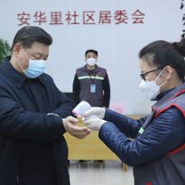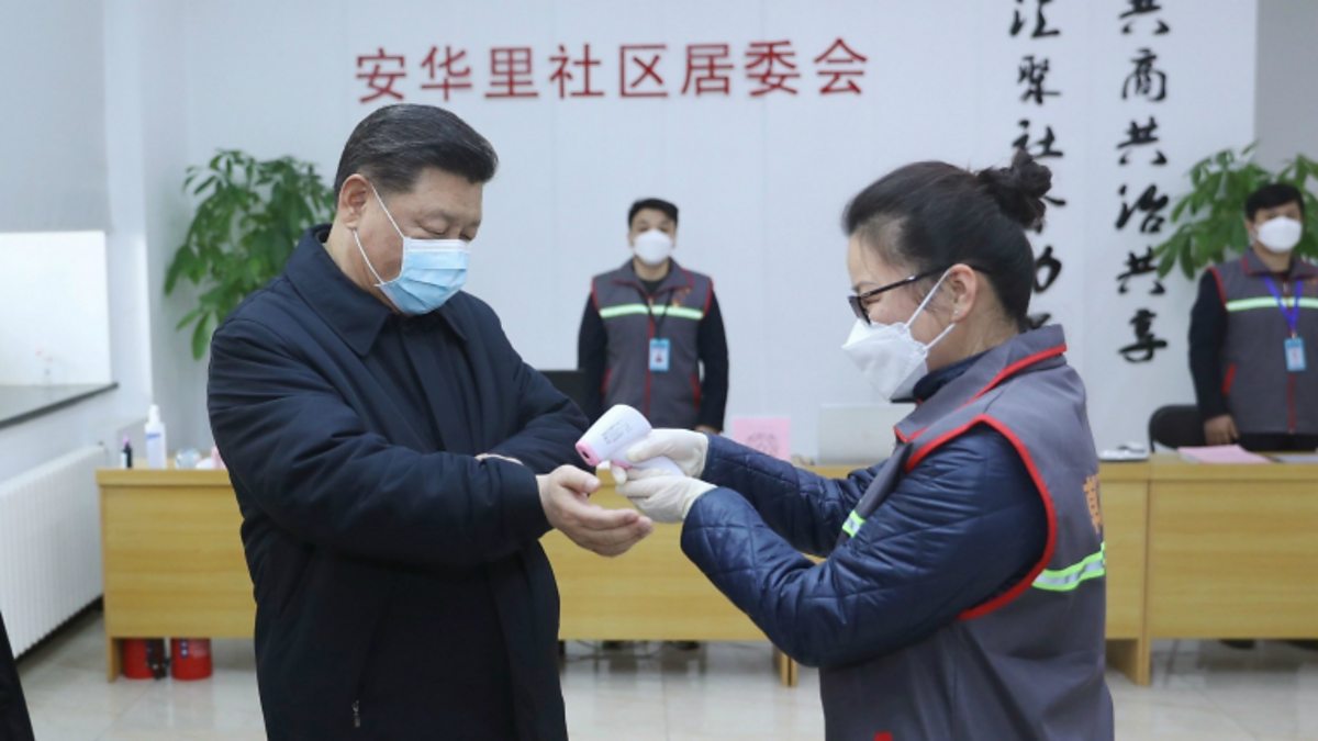 After self-imposed isolation, China's leader steps out to inspect a Beijing hospital.