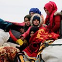 (Picture: Internally displaced Syrians from western Aleppo countryside, ride on a vehicle with belongings in Hazano near Idlib. Credit: Reuters)