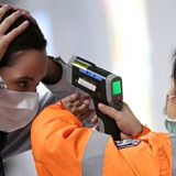 PHOTO: A woman is given a temperature check as she arrives at Hong Kong International airport. CREDIT: Reuters