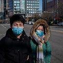 PHOTO: A man and a woman wearing protective facemasks walk on a nearly empty street in Beijing. CREDIT: Nicolas Asfouri/AFP/Getty Images.
