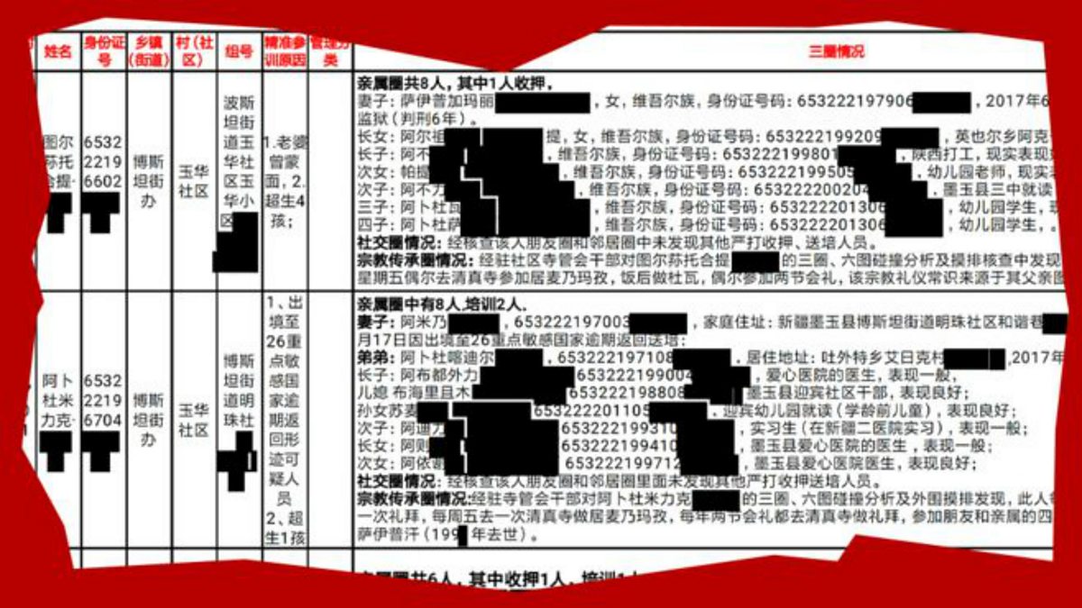 A document that appears to give the most powerful insight yet into how China determined the fate of hundreds of thousands of Muslims held in a network of internment camps has been seen by the BBC. Listing the personal details of more than 3,000 individuals from the far western region of Xinjiang, it sets out in intricate detail the most intimate aspects of their daily lives.