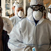 (Photo: A medical team checks on travellers at the Shalamjah border crossing in Iran. Credit: AFP)