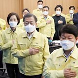 (Photo: South Korea’s President Moon Jae-in salutes to the national flag before a meeting with officials in Daegu, South Korea. Credit: Reuters.)