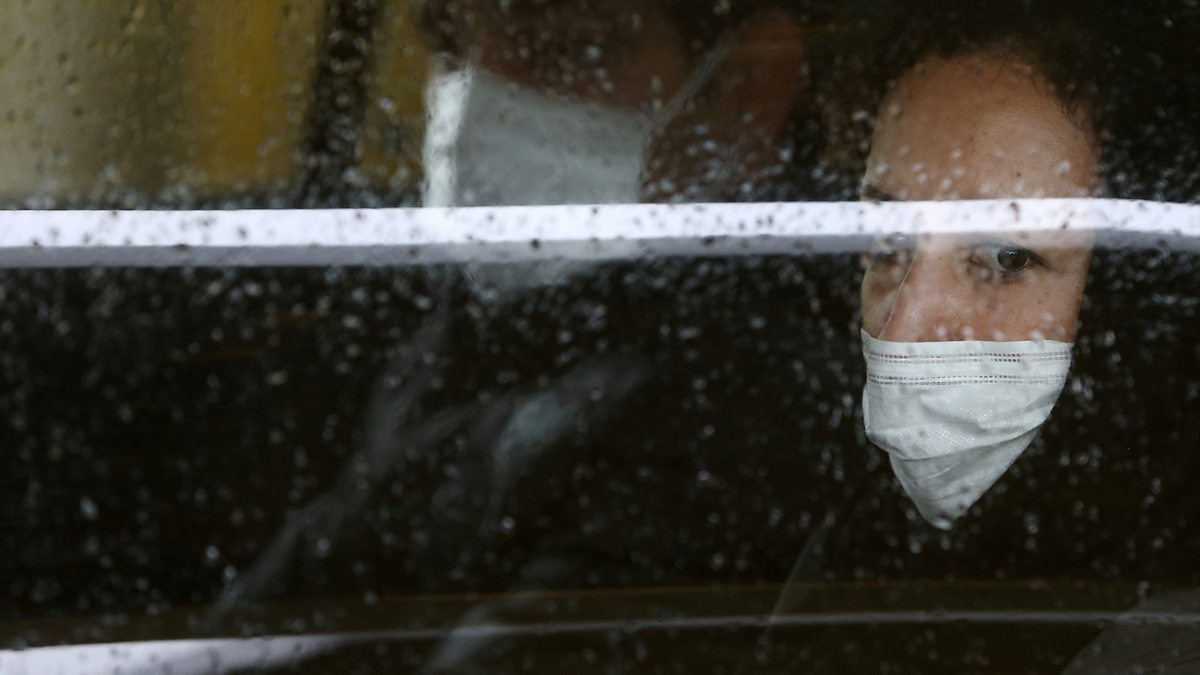 (Picture: Iranian people wear protective masks to prevent contracting coronavirus, as they sit in taxi in Tehran. Credit: Reuters)
