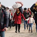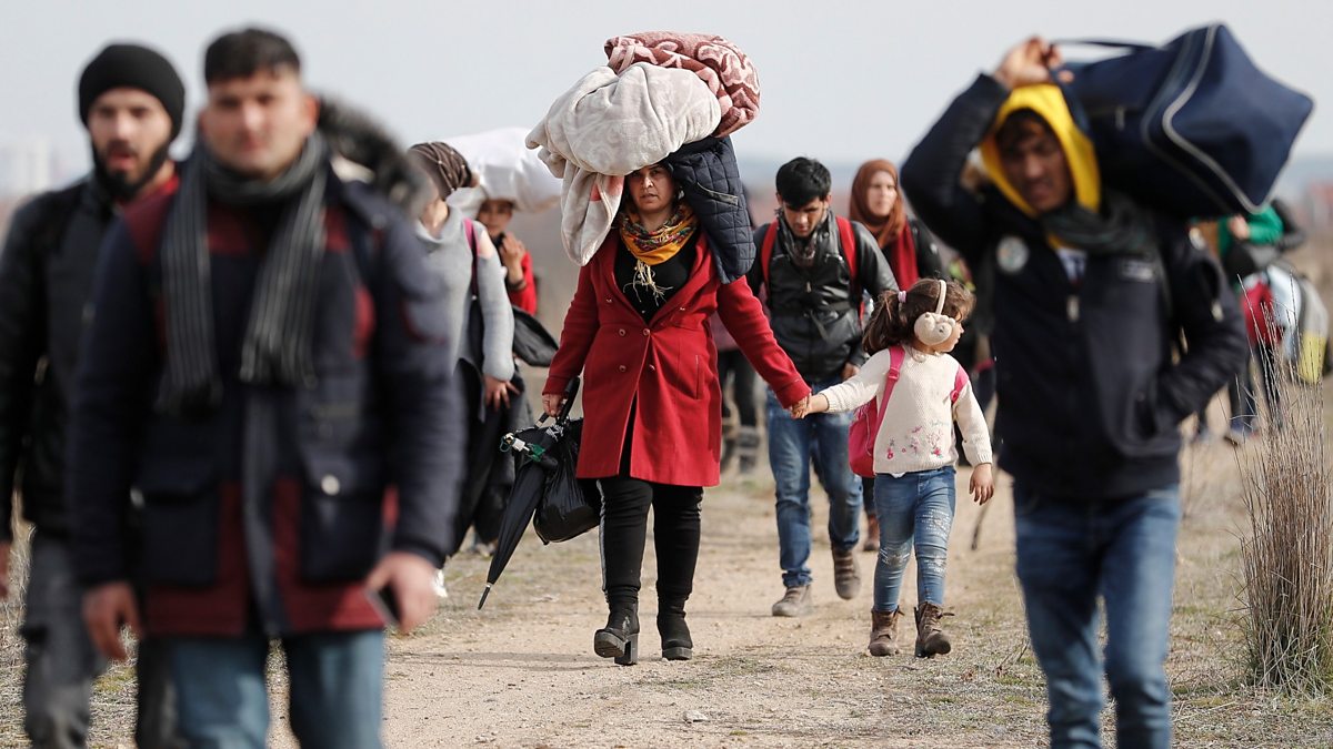 (PICTURE: Refugees and migrants walk in a dirty road heading to the Turkish-Greek border and trying to enter Europe. CREDIT: EPA/DIMITRIS TOSIDIS)