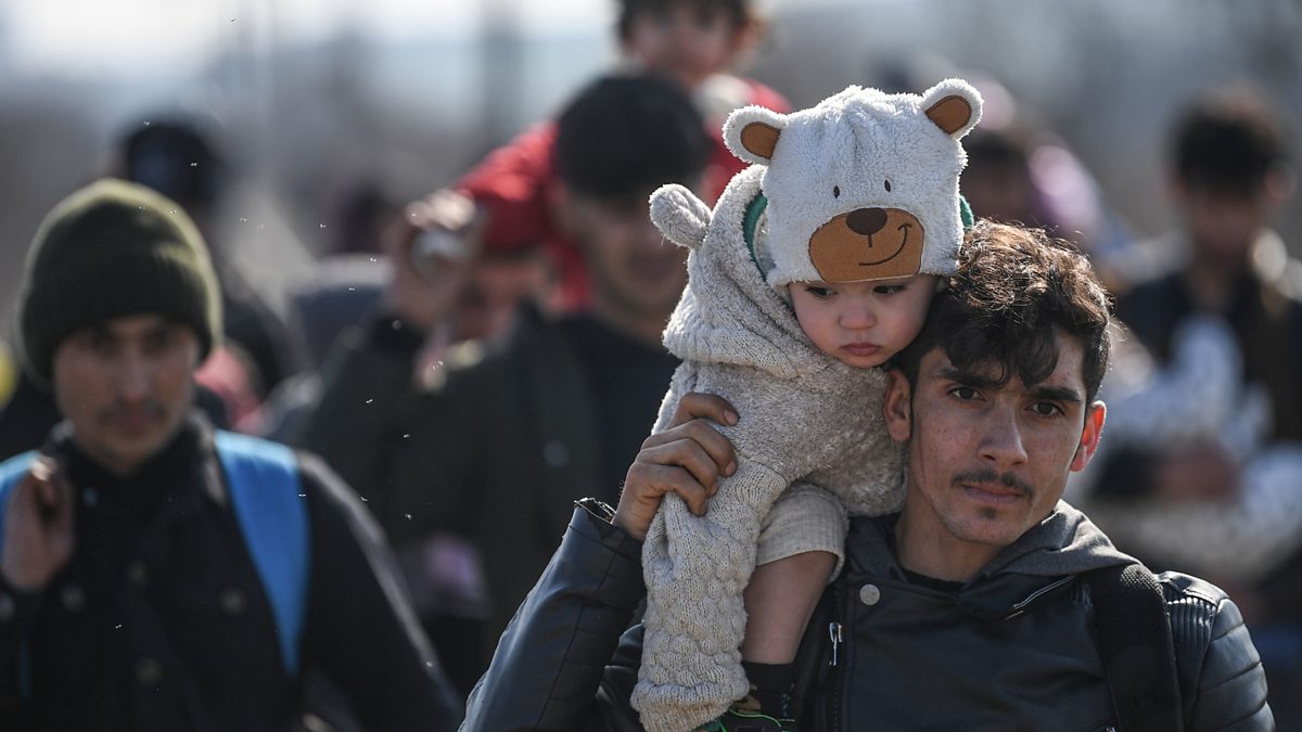 (Photo: Migrants walk on railways toward Meritsa river, near Edirne in Turkey. Credit: Getty)