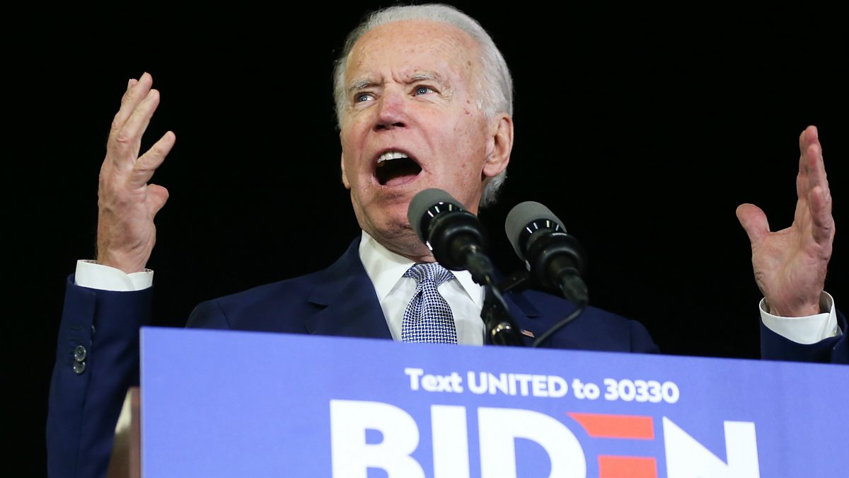 Credit: Democratic presidential candidate former Vice President Joe Biden speaks at a Super Tuesday campaign event at Baldwin Hills Recreation Center on March 3, 2020 in Los Angeles, California. Credit: Getty Images.