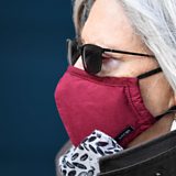 (Picture: A woman wears a face mask as she walks along a street in central London earlier this month. Credit: Daniel Leal-Olivas/Getty Images)