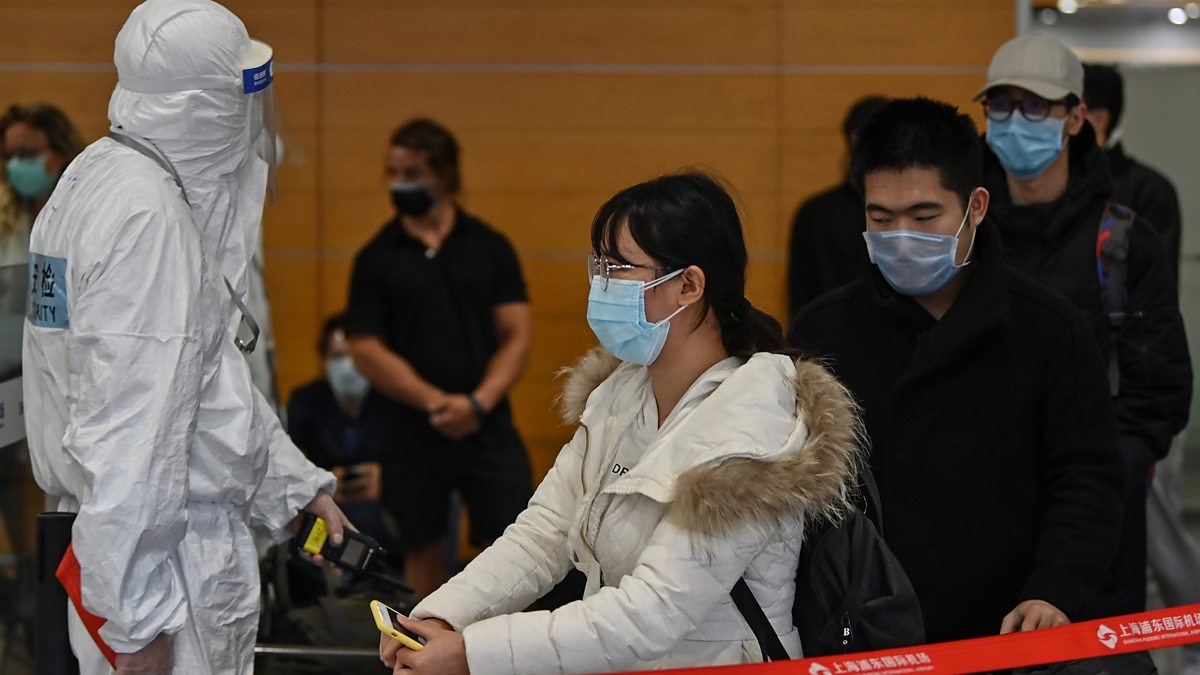 (Photo: Airport security staff wearing protective gear, amid concerns of the COVID-19 coronavirus, check passengers arriving at Shanghai Pudong International Airport in Shanghai in March 19, 2020. Credit: AFP/Getty Images)