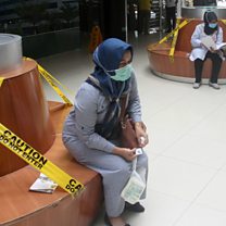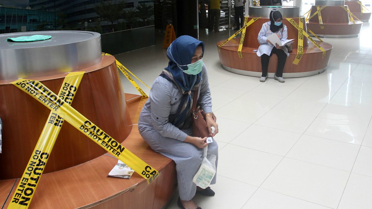 Picture: Visitors sit on social distancing benches at a hospital to prevent the spread of coronavirus disease (COVID-19) in Padang, 21/03/2020. Credit: Reuters.