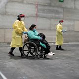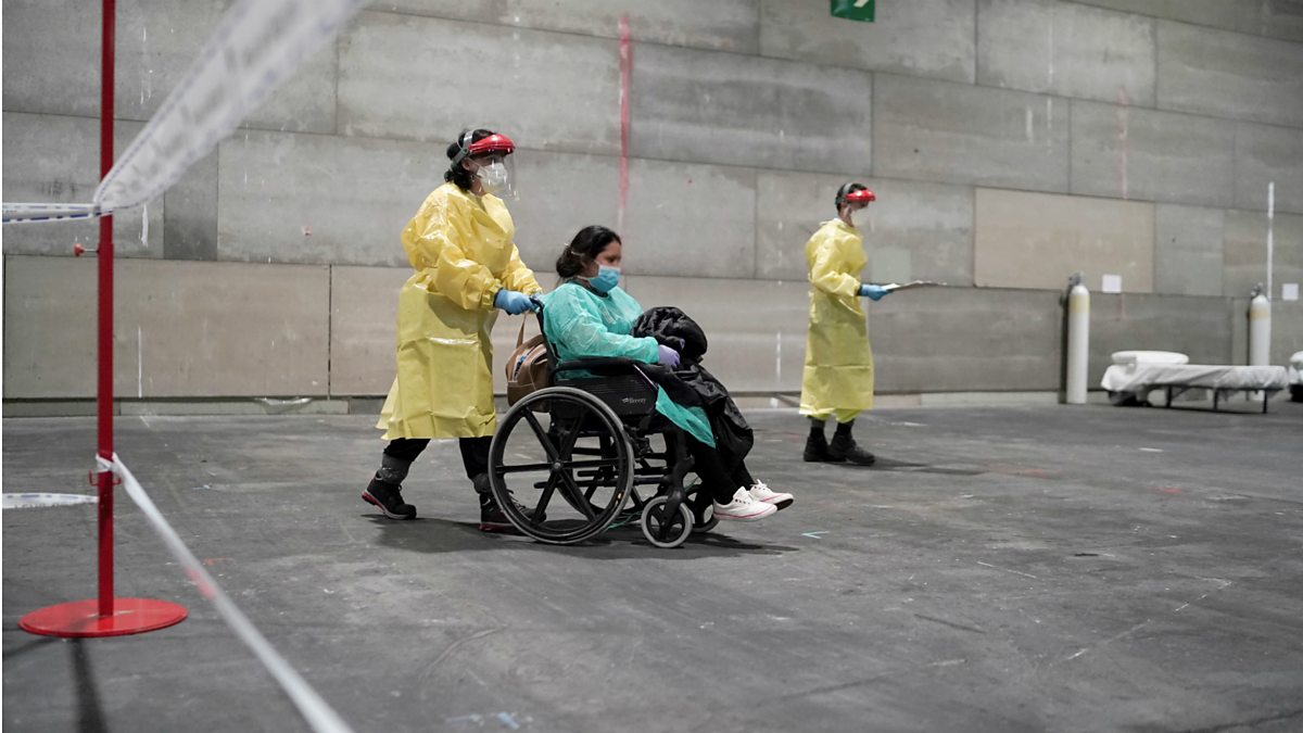 Picture: Coronavirus patients arrive at a military hospital set up at the IFEMA conference centre in Madrid. 22/03/2020. Credit: Reuters.