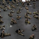 (Picture: U.S. Army personnel sit apart at the Jacob K. Javits Convention Centre, which will be partially converted into a hospital for patients affected by the coronavirus disease in Manhattan in New York City on 27 March 2020. Credit: Moon/Reuters)