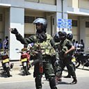 (Photo: Security personnel stand guard after a controlled explosion in front of a movie theatre in Colombo on April 24, 2019. Credit: Jewel Samad/AFP/Getty Images)