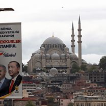 (Photo: An election banner with the pictures of Turkish President Erdogan and AK Party mayoral candidate Yildirim is seen over the Galata bridge in Istanbul 07/05/2019. Credit: Reuters)