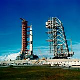 (PHOTO: The Saturn V rocket carrying the Apollo 11 spaceflight sits on the launch pad at the Kennedy Space Center on July 1, 1969. CREDIT: NASA/REUTERS)