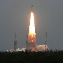 (Photo: Chandrayaan-2 blasts off from a launch pad at Satish Dhawan Space Centre in Sriharikota. Credit: EPA)