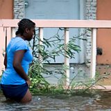 (Photo: A woman walks in a flooded street after the effects of Hurricane Dorian arrived in Nassau, Bahamas, September 2, 2019. Credit: REUTERS/John Mar)