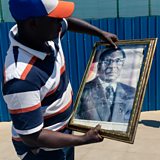 (Photo: A man carrying a portrait of late former Zimbabwe president Robert Mugabe makes his way to the Robert Mugabe International Airport where the body of the deceased leader will arrive. 11/09/2019. Credit: Jekesai NJIKIZANA / AFP)JEKESAI NJIKIZANA/AFP/Getty Images)