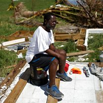 (Photo Carl Mills takes a break as he works to rebuild his house after Hurricane Dorian hit the Abaco Islands in Spring City. Credit: Marco Bello/Reuters)