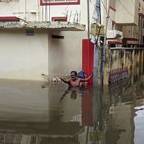(Photo: A man in the flood waters at a neighbourhood in Patna, in the eastern state of Bihar, India. Credit: Reuters)