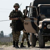 (Photo: Turkish soldiers in the Turkish side of the border between Turkey and Syria. Credit: Burak Kara/Getty Images)