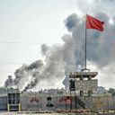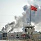 (Photo: A picture taken from Akcakale in Turkey shows strikes on the Syrian town of Tal Abyad. Credit: AFP)