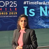(Photo: OS presenter Divya Arya at COP25 climate summit in Madrid, Spain. Credit: BBC)