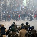(Photo: Protesters clash with security forces during a protest in Delhi. Credit: Rajat Gupta/EPA)