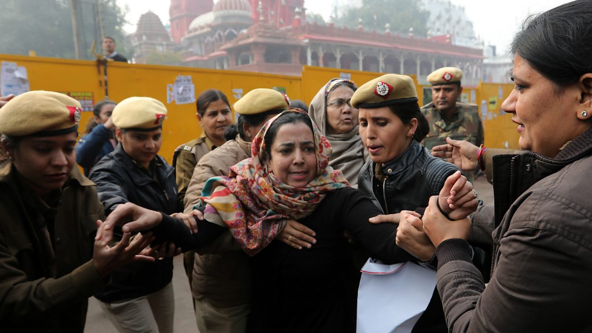 (Photo:Delhi police detain protesters. Credit: EPA/Rajat Gupta)