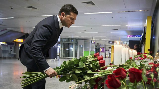 (Photo: Ukrainian President Volodymyr Zelensky pays tribute to plane crash victims. Credit: EPA)