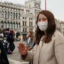 (Photo: Tourists wearing protective face masks at the Piazza San Marco in Venice, Italy, 24 February 2020. Credit: EPA)