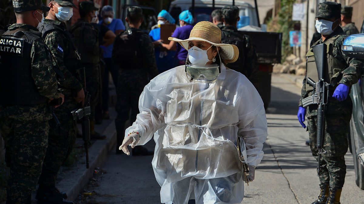 (Photo: Health personnel and members of the police and the army arrive in Tegucigalpa, Honduras after new cases of the virus were confirmed. Credit: Orlando SIERRA/AFP)