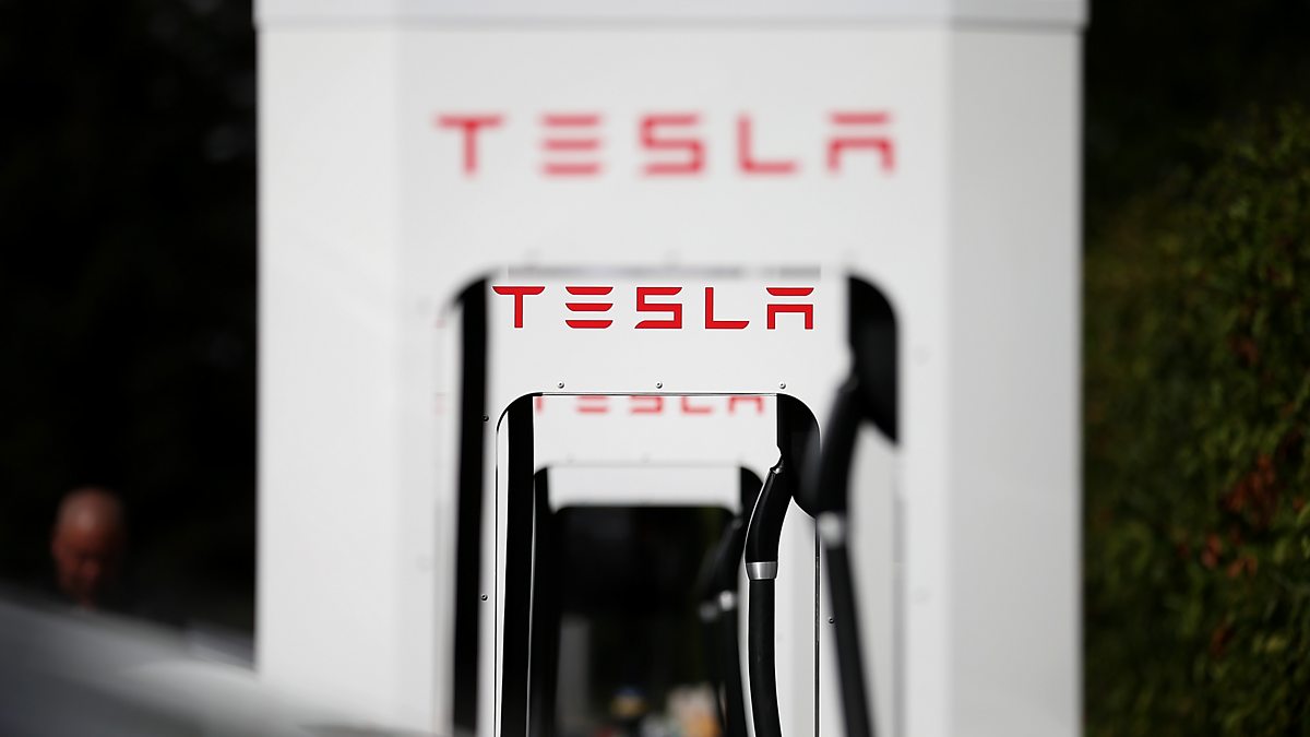 (Picture: Tesla charging stations. Credit: Justin Sullivan/Getty Images)