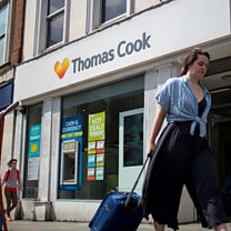 (Picture: A woman walks past a branch of Thomas Cook. Picture credit: Getty Images.)