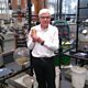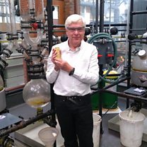 (Image: World Business Report presenter Nigel Cassidy with a gold bar. Credit. BBC)