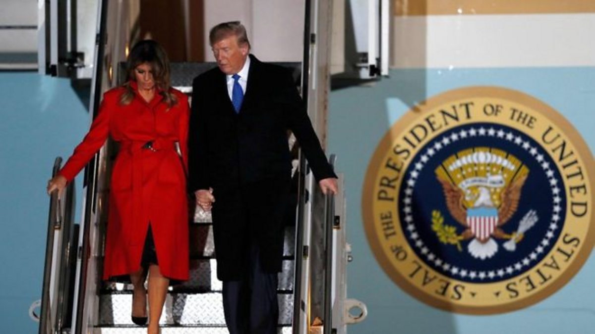 (Photo: President Trump arrives in London. Credit: Dennis/AFP)