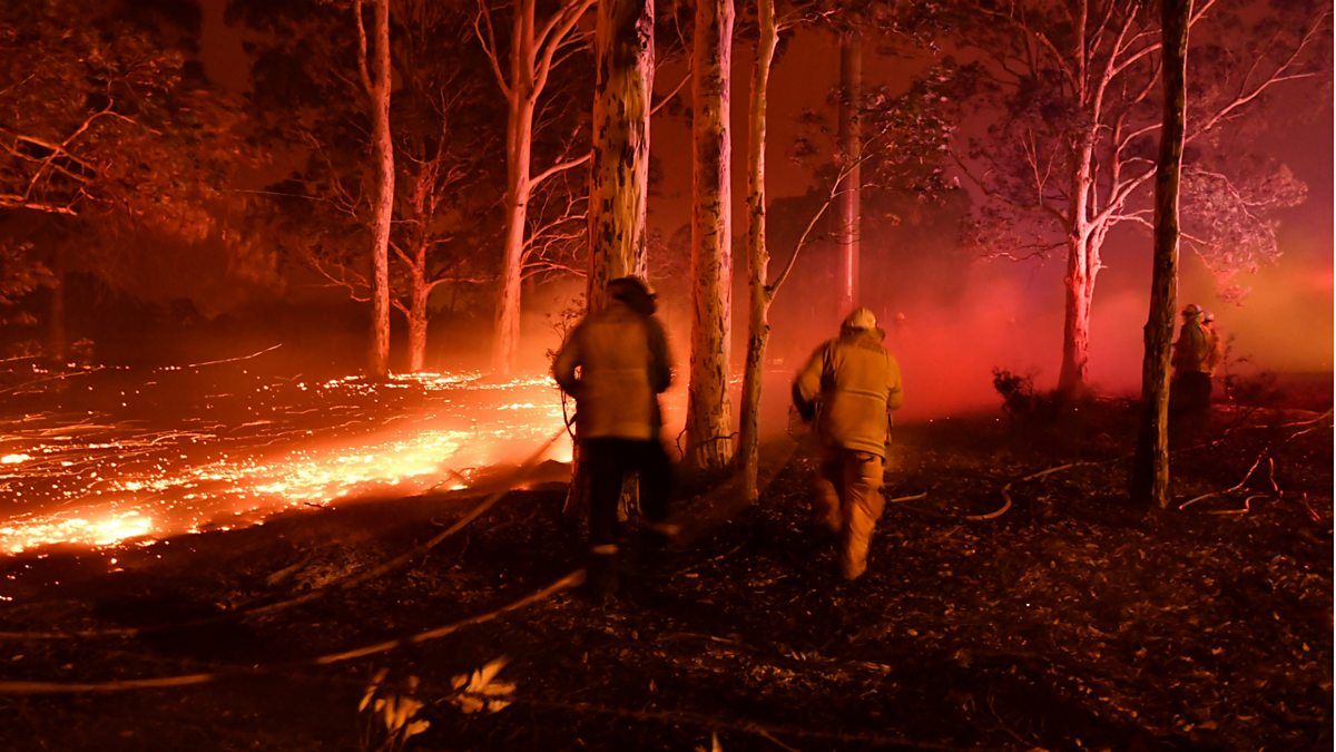 (Picture: Firefighters hose down trees as they battle against bushfires. Credit: Saeed Khan/AFP via Getty Images)
