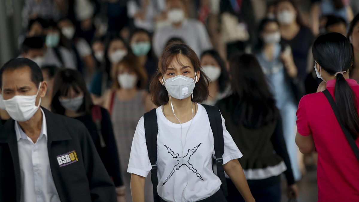 ( Photo: commuters wearing protective masks in Bangkok credit: EPA/ Diego Azubel)