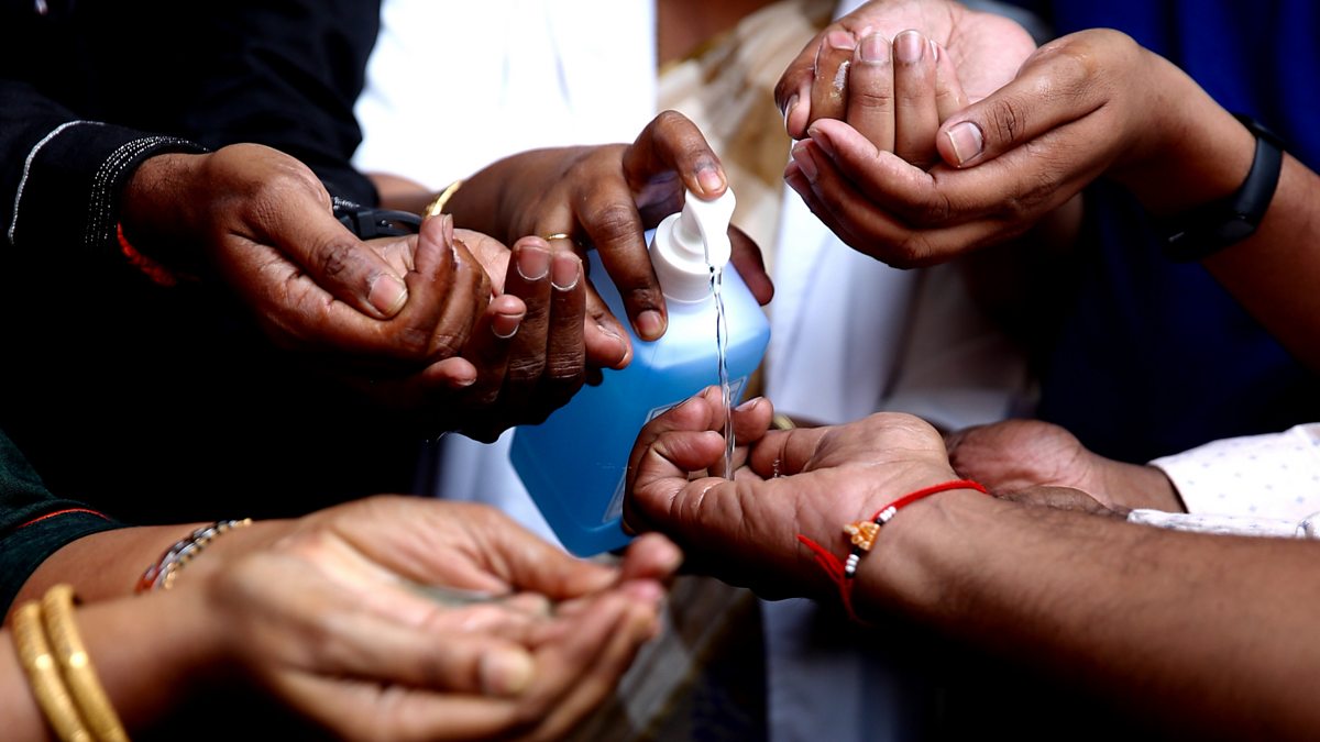 (Photo: Preventative measures against novel coronavirus outbreak in Bangalore credit: EPA/JAGADEESH NV)