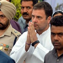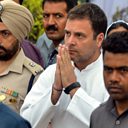(Image: Indian National Congress party president Rahul Gandhi gestures at the martyrs memorial in Amritsar. Credit: AFP)
