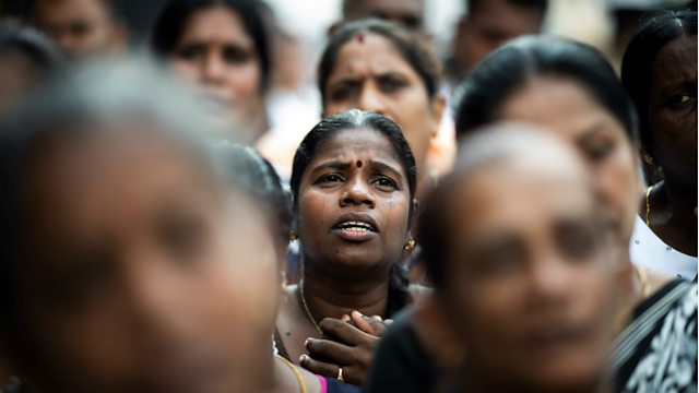 (Image: Devotees at a barricade near St. Anthony's Shrine in Colombo, Sri Lanka. Credit: Getty Images)
