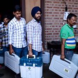 (Image: An Indian police officer stands guard as election officials carry Electronic Voting Machines (EVM) in Amritsar, India. Credit: AFP)