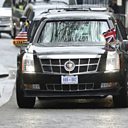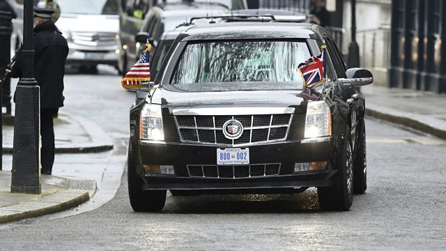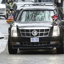(Image: The US Presidential Cadillac known as "the Beast" entering Downing Street in London. Credit: PA)