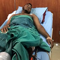 (Picture: A victim of a gunshot wound receiving treatment in a hospital in Khartoum. Credit Reuters / Georgy)