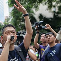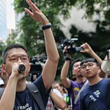 (Image: Former lawmaker and activist Nathan Law Kwun-chung at a rally in Hong Kong. Credit: EPA)