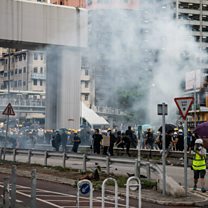 (Image: Clouds of tear gas during a demonstration in the district of Yuen Long in Hong Kong, China. Credit: Getty Images)